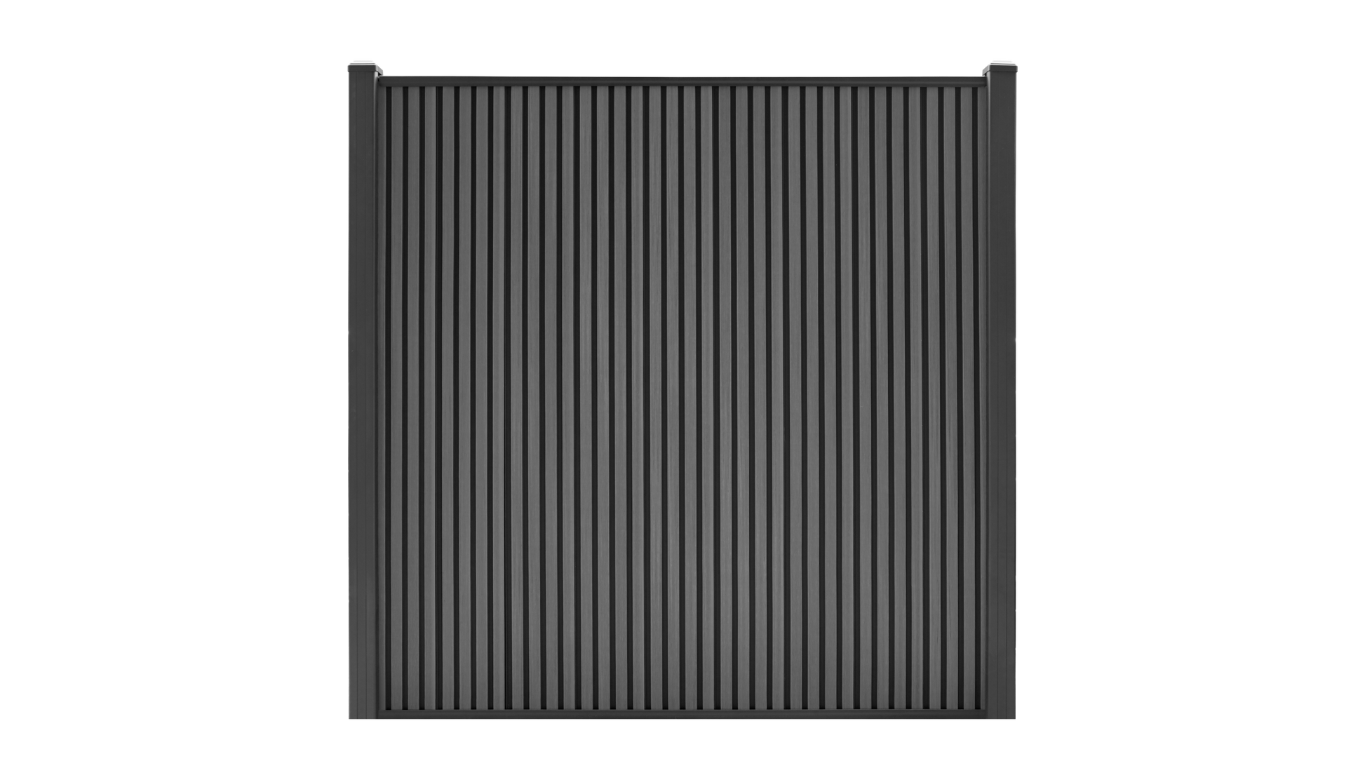 Wij leveren planken van 2,5 cm dik en 18 cm hoog. Een extra dikke laag zodat u een robuuste moderne zwarte composiet schutting van de beste kwaliteit heeft! Een schuttingsectie is 180 cm breed. De installatiehoogte, met een bodemvrijheid van 5 cm, is 176 cm en 193 cm omdat de planken iets in hoogte verliezen doordat ze in elkaar worden geschoven.